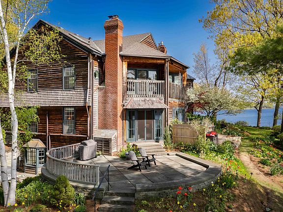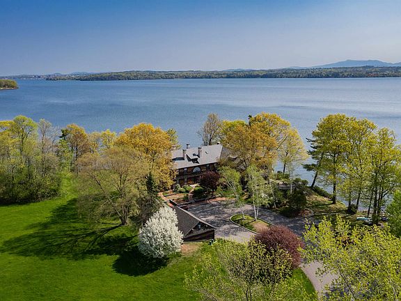 Lake Champlain living at its best with 575 feet of stunning lakefront on Shelburne Point and impressive views of the Green Mountains of Vermont. East Lake is a restored lakefront manor house with 5 custom-built townhomes,4.6 private acres, private beach, and protected cove with docks and moorings. Dock your boat or have kayaks and paddle boars to enjoy our incredible Lake Champlain. This south facing end unit has terrific custom built double patios facing mountain views and a serene cove. The main living area has custom wood finishes, new gas fireplace, dining area and granite kitchen. An oversized atrium door takes you to the lakeside private patio. The second level lakeside main bedroom has large windows and a private balcony. New custom built-ins offer great clothing storage. The oversized sunny custom bathroom has double vanities, walk in tiled shower & linen storage. An additional bedroom is located on the second level with double closets and full bath. The third level with wood finishes is perfect for an office, bunk room or yoga/exercise room. The finished walk out lower level to the second beautiful patio and hot tub is another good space for an office or exercise room. All new landscaping and walkways were installed at East Lake last year. A great lifestyle! Bike to Shelburne Village for coffee and fun restaurants. 20 minutes to downtown Burlington VT and the International Airport.