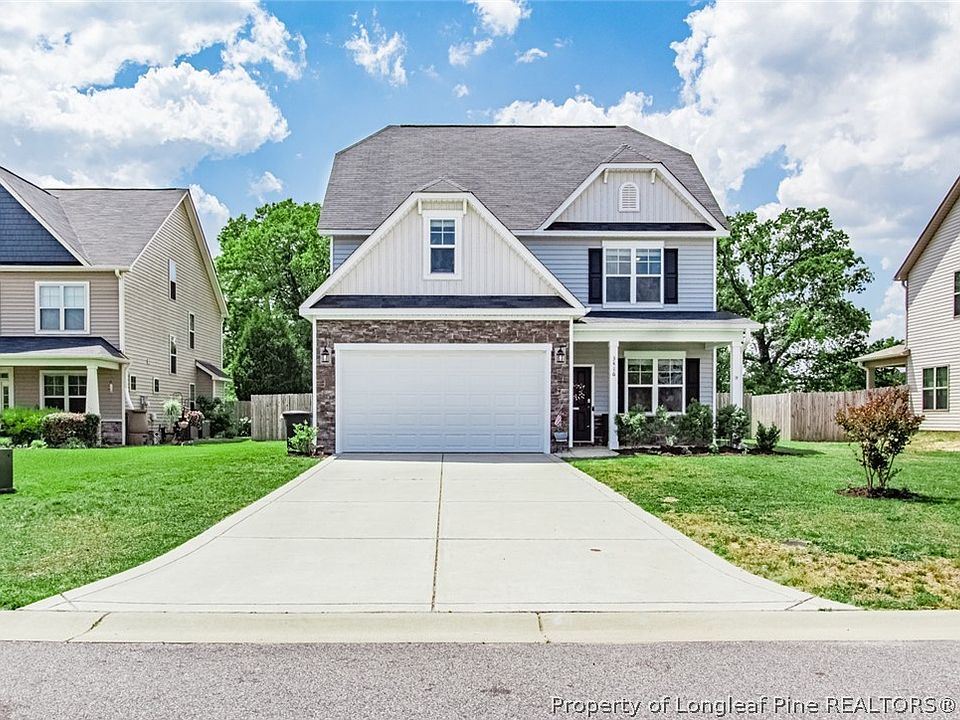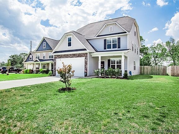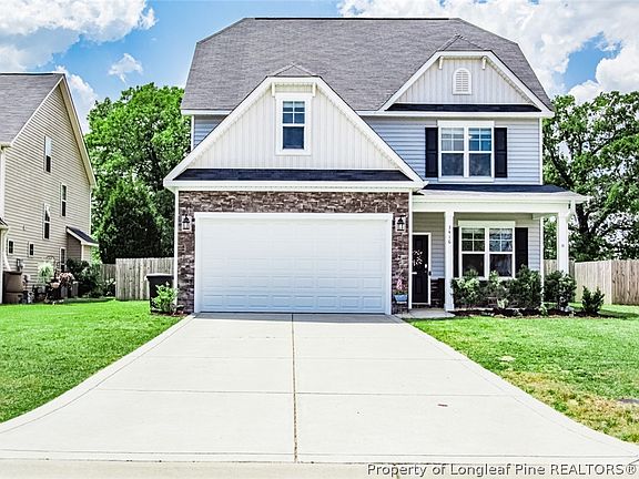 Amazing home in Village at Rockfish. Home features 4 bedrooms, 2 1/2 bath with no carpet downstairs. Downstairs features a flex space in front of home that can be a playroom, office, or gym-whatever your needs are. The formal dining room is next which leads into an open concept kitchen into living room. This home is set up for entertaining. The backyard is completely privacy fenced, and even boasts a covered porch to save you from that NC sunshine. The upstairs features a spacious master suite with walk in closet. The master bathroom has double sinks, garden tub, and separate shower. The other 3 bedrooms are right around the corner to include the laundry room. No hauling laundry up and down stairs. WAIT, there is more. There is an unfinished 3rd floor that can be used as storage or finished for even more square footage. Call today for your private viewing.