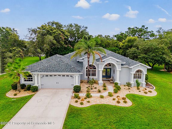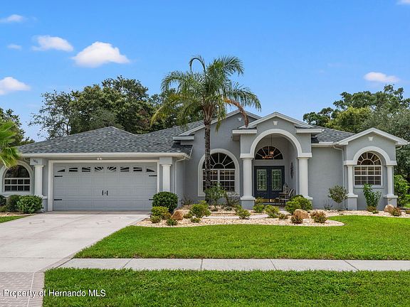 ACTIVE UNDER CONTRACT - ACCEPTING BACK UP OFFERS Dive into Luxury Living at Pristine Place! Ever dreamt of a home where every detail is perfect? Welcome to your move-in-ready masterpiece full of upgrades! Imagine waking up in your spotless 3-bedroom, 2-bathroom POOL home, complete with a spacious 2.5-car garage.Picture this: A BRAND NEW ROOF from 2023, a NEW AC system from 2021, and a beautiful IN-GROUND SALT WATER POOL with a screen enclosure built in 2019. Fresh exterior paint and new landscaping greet you as you arrive, making the double-door front entry a grand statement.Can you see yourself here? Step into the formal living and dining areas with high ceilings, fresh interior paint, and NEW LUXURY PLANK FLOORING throughout. Crown molding and plantation shutters add that touch of elegance you've been looking for. The heart of the home is an open-concept kitchen that flows seamlessly into the spacious family room. Imagine cozy evenings by the custom built-in fireplace, or sunny days with the sliding glass doors open to the lanai. The kitchen has plenty of cabinets and counter space, granite countertops, a breakfast bar, a dinette space, a built-in pantry, and NEW STAINLESS STEEL APPLIANCES. Need a retreat? The primary bedroom suite is your personal oasis with sliding glass doors that lead to the lanai plus HIS & HERS CLOSETS, and a private bathroom featuring double sinks, a large walk-in shower, and a garden tub. The guest bedrooms are roomy and comfortable, perfect for family or visitors, sharing a nice guest bathroom. Outdoor living at its best: The NEW SALTWATER POOL, with its big BRICK PAVER POOL DECK, offers both covered lanai space and deck space under the screen enclosure. Whether it's a barbecue or a quiet evening swim, this area is perfect for all your outdoor activities. Storage galore! The oversized garage isn't just for cars - use the extra space for storage, a golf cart, ATV, motorcycle, or even a workshop. Community perks? Absolutely! In the gated community of Pristine Place, you'll enjoy a clubhouse, fitness center, community pool, park, and tennis courts, all in a safe and secure environment. And all these amenities for a low monthly HOA fee of just $77 with no CDD fee. Location, location, location! Just 5 minutes from the Suncoast Parkway, you're 45 minutes from Tampa's vibrant cultural scene, world-class dining, and stunning waterfront views. In 1 hour and 45 minutes, you can be in Orlando, enjoying theme parks and endless entertainment. And within an hour, St. Petersburg offers beautiful beaches, an eclectic art scene, and vibrant nightlife. Ready to make this dream home yours? Come see it today and fall in love with your new home!