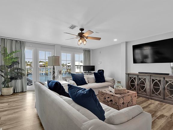 Gorgeous Waterfront dream home with boat slip located in the upscale, gated boating community, Palm Harbor. This expansive residence is perfectly designed for full time living or as a High Income Potential Vacation Rental. Palm Harbor also offers deeded beach access! Fabulous Cotton Bayou views from all 3 levels, double exterior decks and waterside patio with fire-pit. Deeded Slip #15 includes 20,000 lb. boat lift, and provides easy access to the beautiful waters of Cotton Bayou, Ole River, Terry Cove and fast access to Gulf waters. Jump in your boat and take off for a sunset cruise or watch dolphins play from the community dock. The multi-level floor plans allows for entertaining from two levels as well as privacy for guests. Throughout the home, living spaces flow seamlessly from inside to the outside. The spacious, open plan of the main floor includes the beautifully appointed living room with fireplace, dining area and a chef kitchen, each with wonderful views of the bayou. Large two car garage with storage. Don’t miss this exceptional home! There is first come first serve boat trailer storage. The deeded beach access is directly across the street to the beautiful beaches of the Gulf Of Mexico with its sugar white sand and emerald waters. Bonus, outdoor shower. Rental projections in docs.