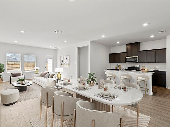 STUNNING! BRAND NEW NEVER BEEN LIVED IN! 4 beds, 2.5 baths PLUS game room, on an interior lot with a private yard. Bright open concept featuring luxury vinyl plank flooring, high ceilings, and recessed LED lighting. The kitchen is designed for both style and function with island seating, a walk-in pantry, Quartz Countertops, Stainless Steel Appliances including electric range, microwave, dishwasher, AND side by side refrigerator. The living, dining, and kitchen flow seamlessly, making entertaining effortless. The primary suite is conveniently located downstairs with its own ensuite bathroom with over size shower and HUGE walk-in closet. First floor laundry room with BRAND NEW WASHER AND DRYER and guest half-bath. Upstairs, you'll find three additional bedrooms, a full bath, and large game room. Energy efficiency shines here with spray-foam insulation and Energy Star Certification to help keep utility costs low! Step outside to enjoy the fenced backyard, plus 16x7 covered patio. Touch screen Smart Home control, Video Doorbell, Kwikset door control. The neighborhood is new, quiet, and welcoming.