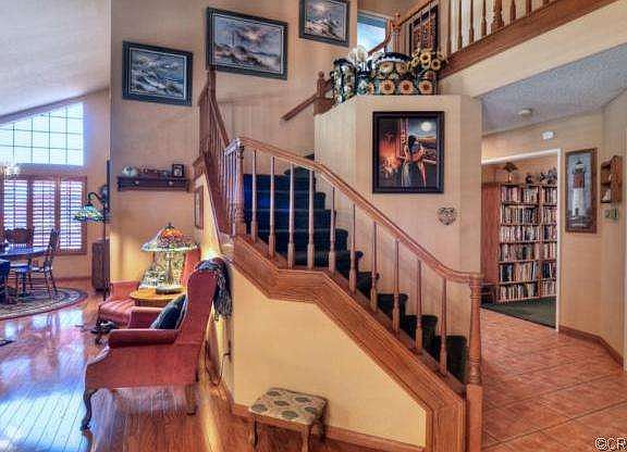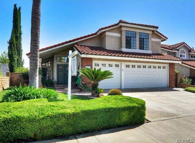 Wake up to the sunrise in this gorgeous view home in a sought-after community of North Chino Hills. This 4 bedroom 3-bath home boasts a dramatic golden oak staircase w/vaulted ceilings, oak hardwood floors in the living/dining room, terra-cotta tile entryway/kitchen. Eat in Kitchen w/lots of cabinets. Custom wood shutters/blinds downstairs. Wood-burning fireplace with custom oak mantel in family room. The spacious downstairs office could easily become a 5th bedroom if preferred. Upstairs, the master bedroom offers stunning city-light views, and an attached master bath with dual vanities and walk-in closet. Two more bedrooms upstairs each feature ceiling fans and built-in closet organizers. The fourth upstairs bedroom is over-sized, and may be used as a second master; it boasts two closets and is currently used as an entertainment room- featuring an overhead projector and screen. The spacious side and backyard are paved for easy maintenance. Experience the convenience of this home's location when you can walk to all these amenities: The Shoppes, post office, library, fire/police stations, city hall, restaurants, groceries, schools, banks, churches, community center, and much more! You'll love this home and the friendly, and family-oriented neighborhood!