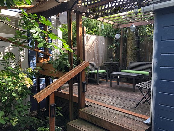 Lower unit in a Victorian duplex in the Hawthorne District. Entrance off side of house through garden --very private. Kitchen plus 3 large rooms. Front room connect to bedroom through double doors that you can leave open or closed per preference. Bath off bedroom. One year, then month-to-month. Owner pays trash, water. Tenant pays gas, electric.