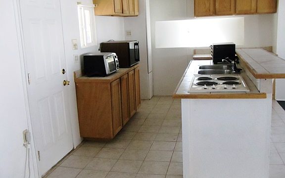 3 Bedroom, 2 Full Bath Home with like-new interior. Large master bedroom with glass enclosed walk-in shower. Large front living room and dining area. Island kitchen plus counters with lots of cupboards. New wall to wall carpeting, new paint throughout. New central AC & heater. New toilet, garbage disposal, bath linoleum, ceiling fans, stove top fixtures and light fixture. Well maintained with clean, fenced yard including two large awnings on either side of home.