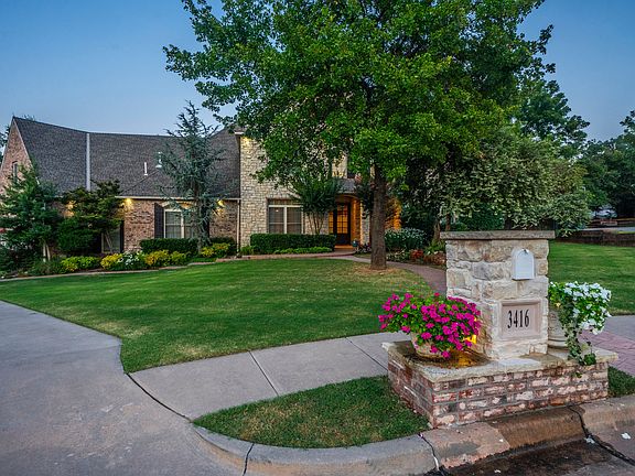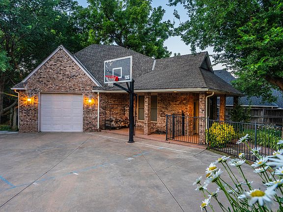 Builder's personal home on nearly 3/4 acre wooded lot in the charming addition of Creek Bend near I-35 off 15th St. Wonderful curb appeal is just the beginning of what this family home provides. Guest House. New Roof to be installed in August. FEMA Approved Above Ground Tornado Safe Room is also the large walk-in pantry by kitchen & mud room. Family rm open to spacious kitchen w/large island, stainless appliances, Bosch 5-Burner cooktop, double ovens & dishwasher, plus a Thermador microwave, ice maker, breakfast bar, crown molding, surround sound speakers, and see-thru fireplace. Mud room has tons of storage area & space for an extra frige. Master & 1 bedroom/study w/full bath & walk-in closet are downstairs. Master has a huge walk-in closet & tons of cabinets along hallway leading to master bath. Master bath has 2 vanities, whirlpool tub & separate shower. Laundry room is next master suite. Large game rm, extra living area, 3 beds & 3 baths are upstairs. Private backyard & deck...