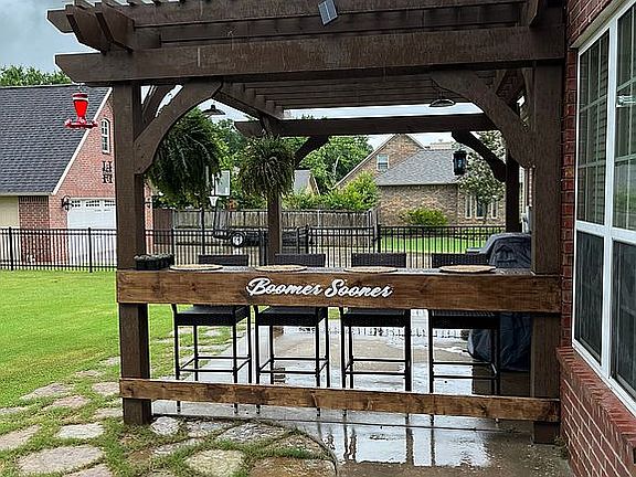 Beautiful brick & rock custom home. Soaring ceilings in family room featuring a stack stone fireplace. Family room flows out to two covered patios. Great kitchen w/gorgeous custom cabinets & granite counters. Formal dining adjacent. Wonderful wood floors in living areas. Spacious master suite w/spa like bathroom. 4th bedroom/office with full bath adjacent is also downstairs. Two bedrooms w/full bath plus large bonus room upstairs. 24x30 detached brick garage w/safe room & unfinished upstairs bonus room-lots of possibilities! Located on Choctaw Country Club golf course.
