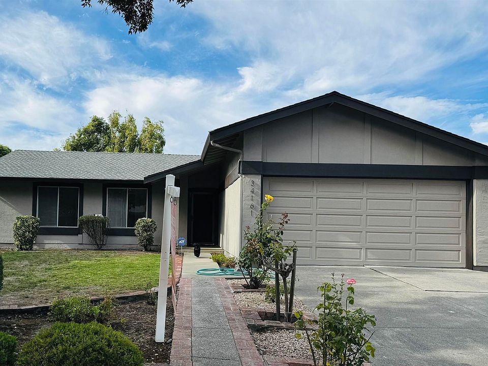 Northeast facing. Bright, Modern Home on Spacious Lot This meticulously maintained home welcomes you with soaring vaulted ceilings and abundant natural light. The interior features newly installed seamless luxury vinyl flooring throughout, complemented by recessed lighting and ceiling fans. Fresh paint inside and out enhances the home's move-in ready appeal. The generous lot offers rare expansion potential, with wide side yards. Established fruit trees grace the property. Located near Northgate Community Park, this home offers exceptional convenience. Enjoy easy access to local amenities including Ranch 99 Market, diverse dining options, and coffee shops—all within walking distance. The location provides a quick commute to major employers via I-84, I-880, Facebook/Google shuttles, BART. Experience Peninsula-adjacent living at a more attractive price point, with award-winning schools completing this compelling package.