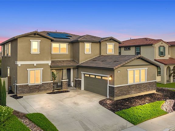 PRICE IMPROVEMENT!! BEAUTIFUL SPENCER'S CROSSING MURRIETA HOME!! Includes spacious loft plus downstairs office! Enjoy OWNED SOLAR!! Located in the desirable Stunning modern tones and finishes are sure to please the most discriminating buyer! Custom board and batten accent walls are showcased in several rooms, captivating light fixtures adorn the ceilings, and luxury vinyl plank flooring throughout sets the tone for this impressive home. The gourmet kitchen boasts quartz counters, a large island with barstool seating, a walk-in pantry, stainless steel appliances, a butler's pantry, and gorgeous white cabinetry with soft-close drawers. Open to the kitchen sits a huge great room with a linear electric fireplace and plenty of room to entertain! The downstairs additionally features a large formal dining room and spacious office (potential 4th bedroom)! Making your way upstairs you'll discover a spacious loft, currently used as a home theater, a large laundry room, the primary suite with a walk-in closet, soaker tub, shower, dual sinks, and vanity, plus two spacious secondary rooms conveniently located near a full bathroom. All bedrooms have views of the incredible hills in the distance. Unwind in the backyard and enjoy time with family and friends! Here you will discover artificial grass and a patio, plus vinyl and block wall fencing, and no rear neighbors. The Spencer's Crossing community features a clubhouse, 3 pools, a spa, a sports park, a dog park, and other parks and trails, several within walking distance. Conveniently located near restaurants and shopping and a very close drive to the new Costco and lots of upcoming new shopping/dining. Schedule your private tour, you don't want to miss this home!