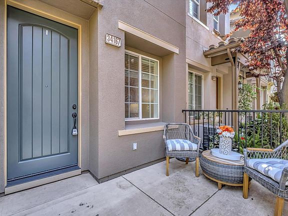 Welcome To 34167 Torino Ter, situated in the Sought-After Villa D'este Community. This home has a light, bright living room, dining, kitchen combo. The kitchen features a new dishwasher, all stainless-steel appliances and granite counter tops. Beautiful, engineered maple hardwood floors on the first level, Berber carpet on second and third floors. Upstairs laundry room with built in cabinets, washer, and dryer. Recessed lighting. Each of the three bedrooms has a private bathroom. Central air and heat. The spacious master suite has a walk in closet and double sinks in the bathroom. Home has two network cables (cat5) and two video cables (rg6) routed to each room, with a central hub. Award Winning Schools: Ardenwood Elementary, Thornton Jr High, And American High School. Surrounded By Walking Trails, Community Parks & Coyote Regional Park. Mins Away from Ranch 99 Markets, Restaurants, Shops, Apple, Meta & Google Shuttle. Easy Access to Bart, I-84 & I-880.
