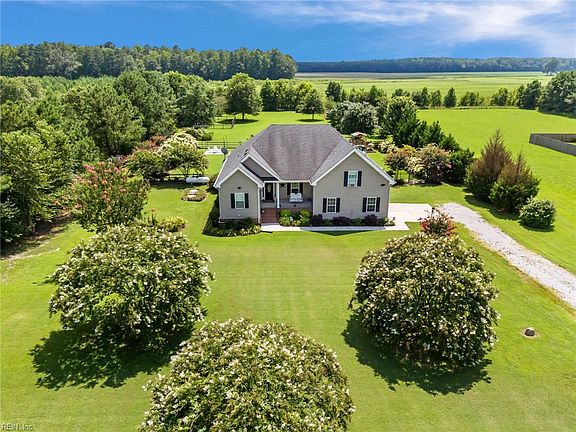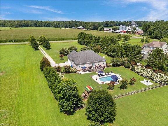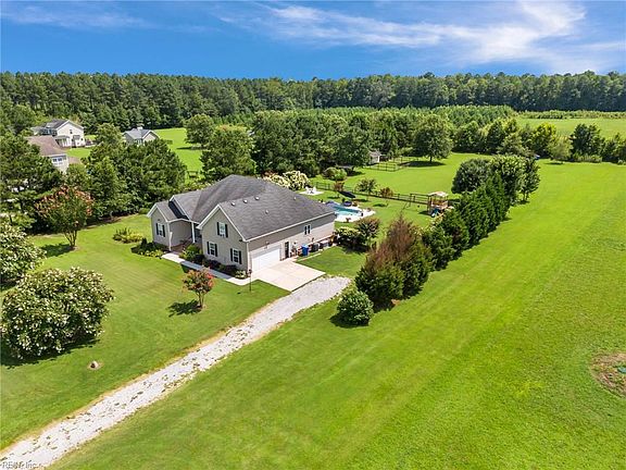 No detail is missed in this gorgeous and well maintained transitional Ranch situated on a private and beautifully landscaped 3 acre parcel in Southern Chesapeake. From the elegant Foyer to the large Great Room with gas fireplace that opens to the Eat in Kitchen with granite counters and upgraded cabinets, you will be pleased with every feature of this Home. The back yard oasis includes a stunning inground salt water pool, large deck, firepit area, and plenty of patio space to enjoy the tranquil setting. 1st floor primary suite with 2 walk in closets and full bath with jetted soaking tub, separate step in shower, and double bowl vanity. Add'l Features: Finished Room over Garage is 4th bedroom with it's own full bath; double tray ceilings throughout; hardwood flooring and newer carpeting; recessed lighting; walk in attic; whole house generator, 2 car garage with openers; surround sound system; 2 wells: one for house with softener system and one for yard; lots of storage space; and more!