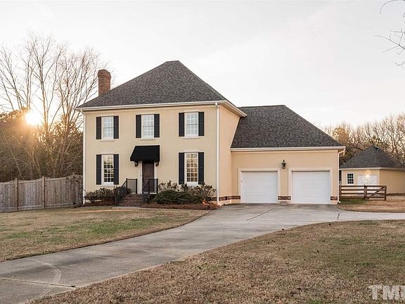 Welcome to this French inspired home in established Holland Crossing. Featuring fully renovated interior, including refinished hardwoods, brand new master bath, new roof and HVAC - plus so much more. This home is sure to please. 3 br/2.5 baths, large living room w/wood burning fireplace. Expansive .79 acre level lot with backyard perfect for entertaining. Separate detached building makes an ideal workshop or garage. Convenient to DT Fuquay Varina, Wake County taxes only. No HOA! Measured by lic appraiser.
