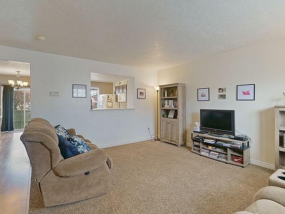 Wonderful townhome in a great location in Eagle Mountain. Home includes kitchen refrigerator, microwave, dishwasher, oven/stovetop, large water heater, a garden patch, and fenced in backyard. Main level features hardwood floors, and the rest of the home features nice carpeting. Upper level has vaulted ceilings. Home is conveniently near Nolen Park, walking trails, and near Pioneer Crossing. You don't want to miss out on this great home! Square footage is an estimate, provided as a courtesy.