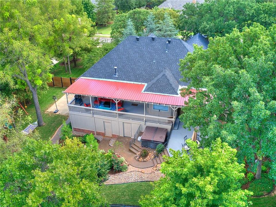 Welcome to your very own Oasis in the middle of Edmond. Beautiful home in the front & relaxing paradise in the back! This home has so many features its hard to list them all. Mature landscaping all around the property as well as custom Modern Fencing on the East side & NEW ROOF in 2018. Once inside the new Modern door, you are greeted w/ wood floors & Brand New carpet in the living room. New floor tile takes you to the completely remodeled Chef's kitchen w/ 3 High-End Ovens, Quartz Countertops, Farm sink & subway tile backsplash. Fresh New Paint on the interior & Stacked Stone accents in the living & kitchen add to the Rustic modern design of the home. Downstairs is the game room & Theater room along with 2 more bedrooms, 2 full baths & New LIFETIME warranty Hot Water tank. Enjoy the backyard Year-round with covered deck, outdoor kitchen, hot-tub & beautiful walking paths. There is plenty of room to play & relax. 2 driveways! Multiple rooms on bottom floor can act as Safe Rooms.