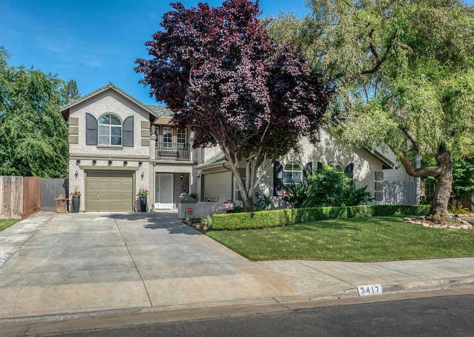 Great Greenfield, within the Clovis Unified School District, 6th bedroom makes for a grand game room, leading to an incredible spacious newly painted deck overlooking the backyard. Original owners have taken great care in preparing this home for a new homeowner. Recently painted, freshly professionally cleaned flooring. Bright kitchen with fantastic light, granite counters, gas cook-top, a pantry and breakfast bar. 3 full bathrooms, each with tub and shower. The backyard treats you to a large covered patio, a spectacular entertaining place, with a sparkling pool and paved side areas. There's a bedroom & bathroom downstairs. Ample storage. 3 car finished garage (1 bay separate & could be exercise room, etc). Plenty of parking with deep driveway, and side yard to park your extra toys. Overhead lighting & fans, double doors to entry, deck, game room, and master which leads to a front deck. Near Clovis East High School. Be sure to view the 360 tour and overhead photos!