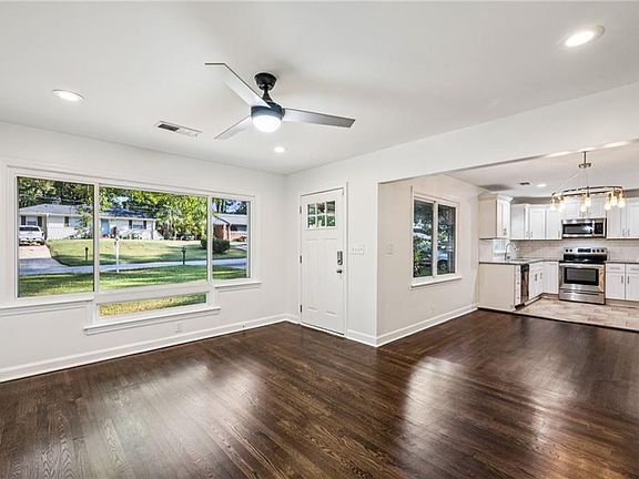 Welcome home to this beautifully updated 1953 bungalow in Belvedere Park. Originally renovated in 2018, the home has seen even more thoughtful updates by the current owners. All windows were replaced in 2024, bringing in abundant natural light while improving energy efficiency. Fresh interior paint and new flooring in the third bedroom add a bright, clean feel, while the newer (2022) privacy fence makes the spacious backyard perfect for pets, play, and entertaining. A storage shed to the side of the deck offers plenty of room for tools, lawn equipment, or seasonal storage. The stylish kitchen features granite countertops, subway tile backsplash, and white cabinets, opening seamlessly to the living room for modern, comfortable living. Original hardwood floors were refinished to highlight the home’s charm, and the converted carport offers a convenient laundry space and additional bedroom. Step outside to your oversized deck—ideal for BBQs, morning coffee, or unwinding with friends. All this in the vibrant Belvedere Park community, close to parks, dining, shops, and with easy access to I-20 and I-285.