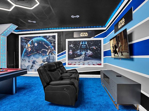 This spacious luxury home is located within the exclusive Windsor Island Resort, providing easy access to Orlando's theme parks, dining, and top shopping destinations. This 7-bedroom holiday villa can comfortably accommodate a large family or group of up to 14 guests, featuring a gourmet kitchen, an expansive yard, and a private pool and spa. Guests have full access to amazing amenities, including a huge luxury clubhouse, pool, a free-to-play arcade room, and much more. Check yourself into this luxury family home and be greeted with bright, sun-filled living spaces with soft, comfortable furnishings and a spacious open-plan design, offering room for everyone to spread out and have their own space. Relax on the lounge after a day spent at Disney and stream all your favorites on the big-screen smart TV, the perfect place to gather for a cozy movie night in. Step into the fully equipped kitchen to cook up breakfast, lunch, and dinner with all the appliances, cookware, and utensils you could need. Off the kitchen is the generous dining room that caters to guests with additional seating at the sleek breakfast bar. Don't feel like cooking? Treat your guests to a night out with countless restaurants just minutes away. Slide open the glass doors to create a seamless indoor-outdoor space that steps out onto the covered lanai, alfresco dining, and a gorgeous resort-style pool and spa overlooking the lake, your own private oasis. Guests have full access to the amazing amenities, including a huge luxury clubhouse, pool, a free-to-play arcade room, and much more. Located within the exclusive Windsor Island Resort, this villa offers easy access to Orlando's renowned theme parks, dining options, and top shopping destinations. Enjoy the convenience of being just minutes away from countless restaurants and attractions, making it an ideal location for exploring the best of Orlando. This property is designed for relaxation and enjoyment, offering a bright, sun-filled living space with soft, comfortable furnishings and a spacious open-plan design. Check-in is seamless, allowing you to start your vacation without any hassle.