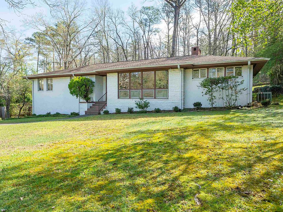 This is what you've been waiting for. Cute three bedroom/two bath mid-century modern house in walking distance to Crestline Village and Mtn. Brook Jr. High. Updated kitchen with granite countertops, double oven and eat in area. Formal Dining Room. Formal Living Room with a wall of windows overlooking beautiful front yard. Spacious den with fireplace and wet bar. One level living. Baths have been updated as well. Both with a tub/shower combo. Built in drawers in the closet of two of the bedrooms. Double closet in master bedroom. Two car garage in basement along with plenty of unfinished area and storage. Workshop in the basement. There used to be a full bath in the basement so already plumbed. Rear yard with large patio off of kitchen and deck off of master bedroom. Fenced in dog run. Don't miss the azaleas! Beautiful neighborhood and convenient location. Schedule your appointment today before it's gone.