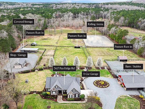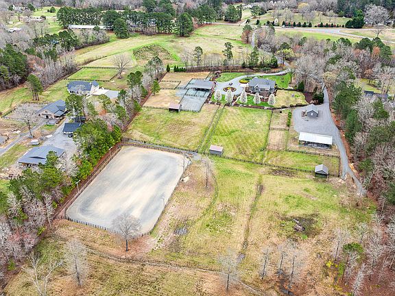 Calling all Equestrian Enthusiasts, your Dream Property is finally here! Welcome to this breathtaking 12+ acre farm located in the heart of New Hill! Upon entering through the secure gated entry, you'll be greeted by this exceptional homestead, featuring a luxurious 5-stall horse barn with hay loft that includes five 12x12 matted horse stalls with updated lighting, sealed stall fans and covered paddocks. The large, heated/cooled tack room has tile floors, a hot water heater, washer/dryer, a finished half bath and lots of storage. The heated wash stall includes hot/cold water and tile walls. The three (~1 acre each) pastures each include a run-in and 1x6 three-board fencing and 12 foot gates. There's also a heated workshop, a 5-bay tractor shed for your farm equipment, boat, RV, or horse trailer.  Don't miss the chicken coop with ''The Ladies'', all the fenced pastures, and large lighted riding area. The circle driveway gracefully guides you to a charming stone walkway that leads to a covered front porch, perfect for relaxing and enjoying the serene surroundings. Inside, the home boasts warm hardwood floors, soaring ceilings, and impeccable attention to detail throughout. The chef's kitchen is a dream, complete with stainless steel appliances, gleaming granite countertops, crown-molded cabinetry with under-cabinet lighting, and a classic farm sink. Enjoy your morning coffee in the bright, sun-filled breakfast nook, or curl up with a good book in the cozy family room next to the stunning stone fireplace, complete with built-in bookcases and accent lighting above. The elegant formal dining room, wrapped in rich Judges paneling, offers an ideal space for memorable family gatherings and holiday meals. The owner's suite is a true retreat, featuring a trey ceiling with crown molding, two expansive walk-in closets with custom shelving and drawers, and a spa-like en-suite bath with heated tile floors, dual Dekton vanities, a relaxing soaker tub, and a beautifully tiled shower. The main floor also includes a guest suite with an attached bath, two additional bedrooms that share a well-appointed hall bath, and a spacious laundry room with ample cabinet storage. Upstairs, you'll find a generous bonus room, perfect for a home office, playroom, or media room. After a long day, unwind in the peaceful sunroom, bathed in natural light from the abundance of windows, and enjoy the added privacy of custom shades. Step outside onto the expansive deck, which features a retractable awning and pergola, or enjoy the tranquil stone patio surrounded by lush landscaping and privacy fencing, ideal for outdoor relaxation and entertaining. Additional highlights of this remarkable property include a new roof, heat pump and A/C unit (all replaced in 2022), a whole-home Generac generator, and a tankless water heater for added convenience and energy efficiency. Don't miss out on the chance to own this spectacular farm, ideally situated just minutes from Jordan Lake and within easy reach of nearby cities such as Pittsboro, Sanford, and Apex. This unique property offers a perfect blend of luxury, comfort, and country living - schedule your private tour today!