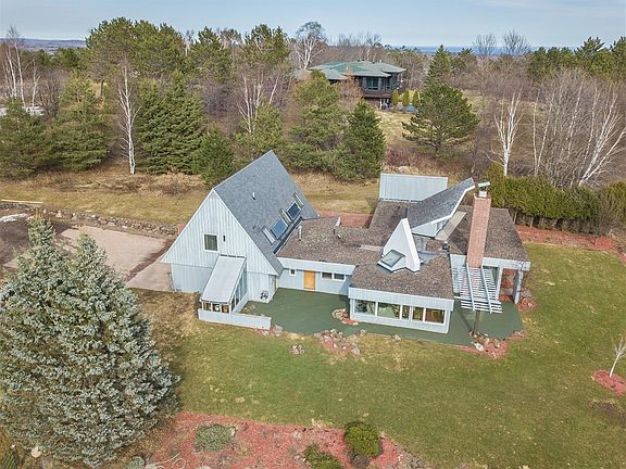 A Gem!! Magnificent Lake Superior views -40 beautiful luscious acres with apple trees, many garden areas and trails. You will surely want to see this perfect close-country charming home! Described by Sharon Ross, Architecture Magazine, as A North Shore home set atop a high point site in Duluth -close to town with magnificent southern views of Lake Superior and Western views of hills and sunsets -with Danish tradition and an eclectic twist... This warm, unique, solid, and sunny 3+ bedroom 3 bath home with different shapes, angles and forms, was carefully designed by David Salmela and Cheryl Fosdick and custom crafted by Builders Commonwealth. The interior features a sprawling main level with welcoming foyer, large closets, and a brick accent wall, separating the large dining area from the living room. This main floor also boasts a spacious kitchen with breakfast nook area and built ins, an office, a Master suite with bath and 2 closets. Upstairs you will find 2 additional large bedrooms with skylights, nice storage spaces, and a full bath. Zoned Hot water heat throughout, in floor heat in the kitchen, dining room and foyer, +passive sunshine heat in the winter, and custom roller shades create the perfect temperatures throughout the year. One must see to appreciate the love & thought that went into the design of this lovely , "enveloped in sunshine" -home! The Location of this property is perfect, actually priceless- as it is just minutes to town! Also: Additional 24.47 acres available - 07490 (17.01 acres access off of Jean Duluth Rd and 07520 7.46 acres (has 2 bldgs on it)-previously part of lakewood berry farms. Septic will be replaced!