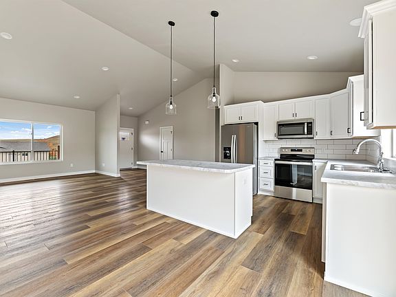 Call or Text Listing Agent - Jason Richards - The Real Estate Center of Spearfish -605-381-1087 for more information. Welcome to your dream home in beautiful Spearfish! This brand-new, quality construction home offers a blend of modern elegance and functional design. Nestled on a corner lot that borders public land with nature trails, this property combines the serenity of the great outdoors with the comfort of contemporary living. Here's your chance to enjoy a premium lifestyle with all the features you've been looking for. Zero Entry from garage and driveway for ultimate convenience. Alongside the spacious two-car garage, you'll find room to add extra parking. Located in a highly desirable neighborhood, this home is surrounded by friendly neighbors and a sense of community. The garage is more than just a place to park your car; it's a functional space with a floor drain. Enjoy an abundance of natural light that fills every room, creating a warm and inviting atmosphere throughout the day. Step outside and savor the beauty of South Dakota's landscapes. A large concrete patio off the kitchen and garage is the perfect spot for outdoor gatherings, while the covered front porch, built with Trex decking, offers a cozy retreat for morning coffee or evening relaxation. With ample storage throughout the home, you'll never have to worry about clutter. The heart of this home is a well-appointed kitchen that boasts upgraded appliances and a convenient kitchen island. (Continued below)