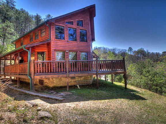 This beautifully crafted, newly refurbished log cabin in the gated and secure Shagbark Estates and Resort community at Wears Valley sits in a private wooded setting with mountain views and features a large wrap around deck, a spacious open floor plan with soaring 20' high vaulted ceiling, polished timber flooring, magnificent picture windows with custom pull down blinds, gas log fireplace with a new blower, a brand new kitchen with granite counter tops and new stainless steel sink and kitchen appliances, freshly refurbished bathrooms with new showers, jet tub, cabinets and granite topped vanities and a brand new stacked washer/dryer combination. This well built abode comes complete with all furniture including brand new log cabin style bedroom sets in each of the two bedrooms.