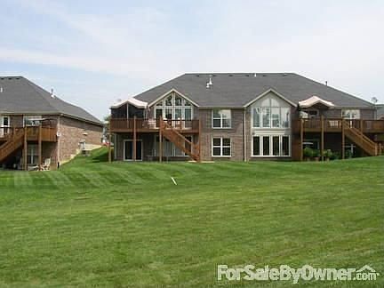 All brick villa on 7th Green of Bear Creek Golf Course. Wentzville School District. Very convenient to shopping and Interstate 70 and 40/61. 3 Bedrooms, 3 full Baths and 2 Car Garage. MAIN LEVEL: Fiese Carpeting, Upgraded Molding, Custom Shades, and Ceiling Fans in each room. Reverse Vaulted Great Room 14' 2" X 15' X 9".Dining Room 14' 2" X 10'.Breakfast Room 11' 4" X 10'. Cedar deck with canopy off Breakfast area. Kitchen 13' 6" X 10' 6". GE Profile Appliances, walk-in pantry, tile flooring, and 42 in. cabinets.Master Bedroom 15' X 15'11" with Coved Ceiling.Master Bath has double vanity with seperate shower, tub, linen closet and walk-in closet.Bedroom 2: 12'2" x 12'2". Laundry area with cabinets and closet. Washer and Dryer gas or electric hookup. LOWER LEVEL: Finished Walk Out with Full Bar and Gas Fireplace. Bedroom 15' 2" X 13'6".Family Room 26'4" X 15'8" and Bar Area 13'6" X 16'8".Additional Office Area. Additional property info: http://www.forsalebyowner.com/listing/8D68B?provider_id=28079