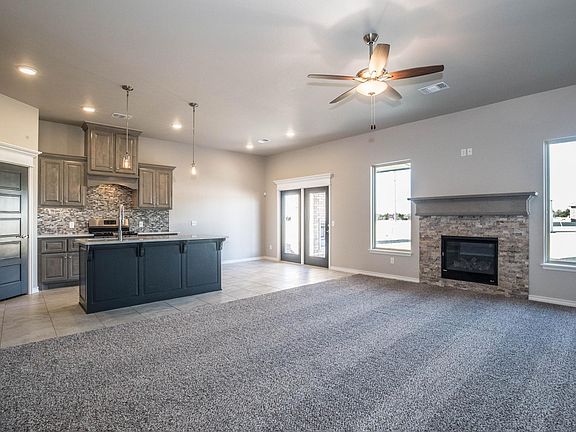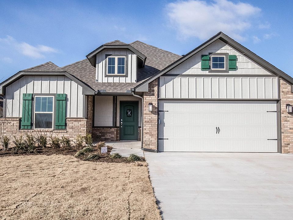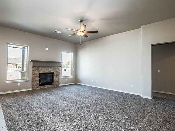 This Drake floor plan includes 1,745 Sq Ft of total living space, which includes 1,550 Sq Ft of indoor living space and 195 Sq Ft of outdoor living space. There is also a 360 Sq Ft, two car garage with storm shelter installed! Home includes 3 bedrooms, 2 full bathrooms. Living area is an open concept to the kitchen, has a cozy gas ignition fireplace, sliding barn door, & floating mantel. Kitchen includes upgraded lighting, 3 CM quartz countertops, stainless steel appliances, 60/40 sink, & tile backsplash. Master suite includes a boxed ceiling with ambient lighting, ceiling fan, gorgeous bathroom with a closet full of space, double vanities, Jetta whirlpool tub, tiled walk in shower, & seasonal racks for extra storage. Amenities include security system, fresh air ventilation, air purification system, landscaped flower beds, covered front & back patio with wood burning fireplace, in ground sprinkler system, and a Rinnai tankless water heater! Drake Floor Plan