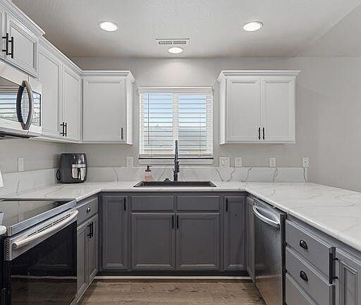 Bright & shiny New updates! 3 bedroom 2 bath nicely updated! Desirable split floor plan. Many new updates! The newly updated kitchen dazzles in the light and is smartly adorned with new Samsung appliances! New Vinyl Plank flooring & new baseboards through out provides for a clean look with easy care. Updated bathrooms! Efficient flow throughout the home, vaulted ceilings and plant shelf with a lovely glass slider to the covered patio for effortless outdoor entertaining. Extra toys or an RV? Parking is a breeze! 2 car garage with additional parking on the side. Fantastic well-designed space! the lot next door is a sweet neighborhood garden offering even more open space privacy in this fun-loving neighborhood