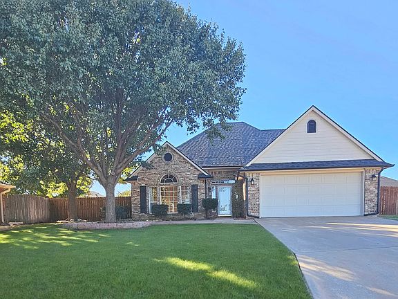This 4 bedroom 2 bath home is ready for you! This two story home is situated in a cul-de-sac and has an attached 2 car garage. Located only minutes from Altus Air Force Base. In the living room is a gas fireplace. The renovated kitchen includes a smooth stone top built in oven and range, microwave and stainless steel refrigerator. Downstairs is the main bedroom and bathroom and upstairs is an additional three bedrooms and full bathroom. The backyard is fully fenced with a wood privacy fence and underground storm shelter. There is a covered back patio with a sliding glass-door. Inclusive utilities include lawn service only.