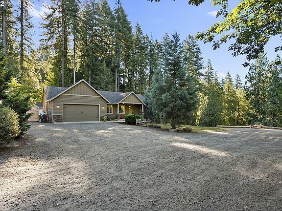 Looking for a quiet, woodsy place to call your own? This custom built single-level home is situated on a large 1.84 acre lot at the bottom of a private road, w/ tons of parking for all of your RV, trailer & utility vehicles needs. Large open concept kitchen w/ slab granite, gas range, center island & wood floors. Large living room with a gas fireplace wrapped in stacked stone. 4 spacious bedrooms, 2.1 baths. Primary on-suite w/ soaking tub and walk-in closet. Covered deck & covered front porch.