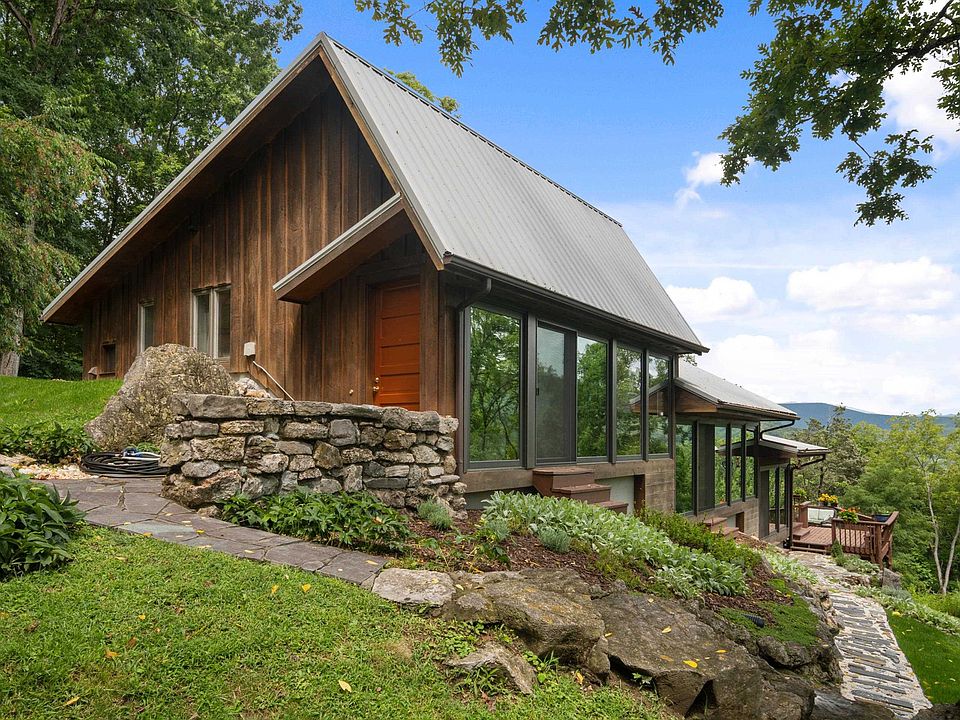 Welcome to this custom-built passive solar home in the sought-after Mossy Springs neighborhood of Blacksburg! Nestled in the mountains and surrounded by panoramic views, this multi-level retreat is a true one-of-a-kind. Expansive windows and exposed rock walls frame the open-concept design, featuring natural stone and ceramic tile flooring throughout. The artisan-crafted kitchen offers maple cabinetry and quartz countertops, while the cozy art studio doubles as a perfect office space. Tiered decks provide the ideal backdrop for outdoor entertaining. The deluxe primary suite includes a loft and spa-like bath with a heated towel rack. The home is designed to maximize solar gain in the winter, using stone floors to naturally radiate warmth. Additional features include a Danish woodstove, radiant heated floors in the addition, and energy-efficient mini-splits. A rare and beautiful home blending natural materials, artful design, and sustainable living. Air conditioned by mini-splits.