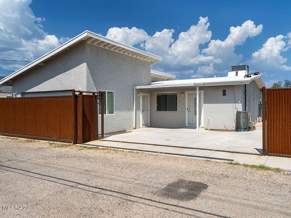 Remodeled house & casita with in central Tucson location. 3 car tandem garage with extra storage and 3 additional parking spots makes for a car lovers dream. Also included seperate building for office/gym. Main house is 3 bedrooms (1 murphy bed incl),3 full bathrooms and 1,128 sq ft. Bathrooms and kitchens fully remodeled with newer cabinets, fixtures, custom backsplash. Casita is studio with 248 sq ft, bathtub separate shower, remodeled kitchen W/D & murphy bed/desk. Office building has power and mini split for AC. Fully gated with heavy duty security fencing. So many options w/ this conveniently located property: Live in one & rent out the other, long-term or Air BnB, use the GH as an office/flex space, or accommodate multigenerational living.