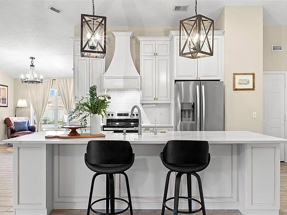 Discover elevated lake living in this beautifully refreshed home nestled in one of Land O’ Lakes’ most charming, family-friendly neighborhoods. Set on a private ski lake with resident-only access, this property blends modern comfort with serene surroundings. Inside, stylish updates create an inviting flow throughout the home. The main living area features dark wood vinyl flooring, a brand-new stove and oven, and a recently renovated laundry space with a convenient sliding folding table. The sunroom, now looped into the home’s HVAC, boasts a custom hanging daybed, perfect for relaxed afternoons overlooking the beautifully landscaped, waterfront backyard. Recent enhancements include a new well pump, updated septic, new outdoor electrical conduits, new water softener and a water heater, ensuring turnkey peace of mind. The garage, once used as a guest suite, now includes built-in storage and remains easily convertible back to a full garage if desired. Step outside to a freshly sodded backyard surrounded by new landscaping—an open canvas for a future pool, deck, or garden. With deep canal access (boat lift can be added), the lake lifestyle here feels both private and effortless. Enjoy a community known for its charm—golf cart parades, quiet neighbors, parks and equestrian stables within the neighborhood, and no HOA. This is more than a home—it’s a lifestyle designed for those who value privacy, connection, and Florida’s natural beauty.