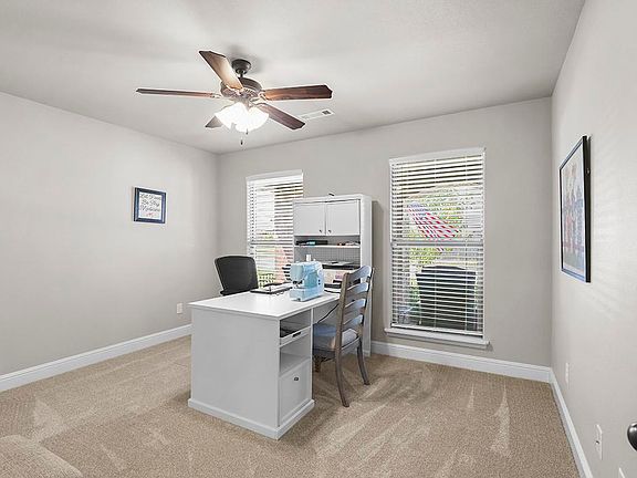 Move-in ready and waiting for you! Once you walk into this beautiful bright open concept with split bedroom design, you will know you are home. This home featuring all new flooring (2024) The eat in kitchen is the heart of the home and the perfect gathering place with granite countertops, stainless steel appliances, custom cabinetry, pantry & a large kitchen island that offers additional counter space and additional bar seating, plus a new dishwasher installed in 2025. The large primary suite offers a walk-in shower, oversized soaking tub, dual sinks, and generous walk-in closet. Additional highlights include a cozy electric fireplace, dedicated laundry room, and an attached 2-car garage for convenience. Out back, enjoy your own covered patio and large, fully fenced yard--perfect for kids, pets, and weekend gatherings. Located in a quiet, family-friendly neighborhood, this home blends comfort, style, and function all in one. Don't miss the chance to make this move-in ready home yours!