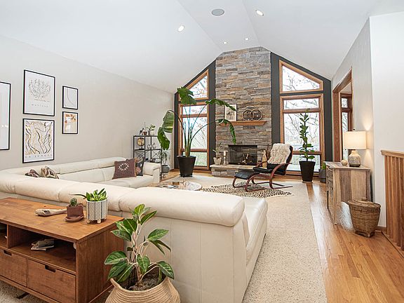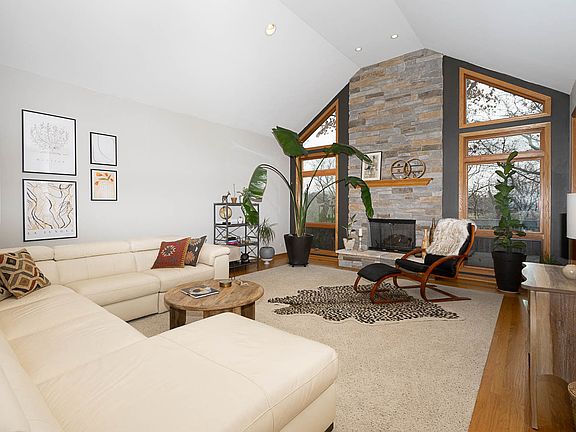 A fantastic opportunity to own a large lot in the highly sought after Forest Ridge Estates in Spring Grove! This is a perfect lot that has both great yard space (with a sprinkler system) and the view of mature trees. Experience the beauty of each season as you look out over the trees in your own back yard! From the moment you walk in the front door, you will be captivated by the soaring ceilings in the living room and the many windows that flood the home with natural light. The dramatic stone fireplace is the focal point of the living area that creates a warm and inviting atmosphere for both spending time with friends or enjoying a quiet evening at home. There is also a separate dining room and a den that can be used as an office, an additional family room or a music room. If you love to cook, this kitchen is perfect for you! It has a great layout and features tons of cabinets, granite countertops, high end appliances and a breakfast bar to entertain your family and friends while you cook. The adjacent eating area is a great spot for casual dining and from there, you can step into the screened back porch and enjoy the privacy of your view. There is also a large back deck that offers a great place to enjoy the tranquility of nature and get some sun in the summer time. This expanded ranch layout features a convenient split bedroom floor plan. The private primary suite has an ensuite bathroom with a large whirlpool tub, dual vanities and a separate shower. On the other side of the home, you have two additional bedrooms and access to a full bathroom in the hallway. The spacious laundry room has storage cabinets that are perfect to be used as your mudroom when you come in from the three car garage. To top off the experience of living in this well thought out home, the high end speaker system allows you to enjoy your favorite music wherever you go. The huge unfinished basement offers plenty of room for expansion with sliding doors that open to a patio and the back yard, a fireplace, high ceilings and great natural light. This home has been meticulously maintained and it shows! The Forest Ridge development was created around the natural woodlands and wetlands to offer residents a relaxed lifestyle that values nature. Yet you are only 50 minutes from both O'Hare and Milwaukee airports, 15 minutes from the Metra station and 20 minutes from Lake Geneva.