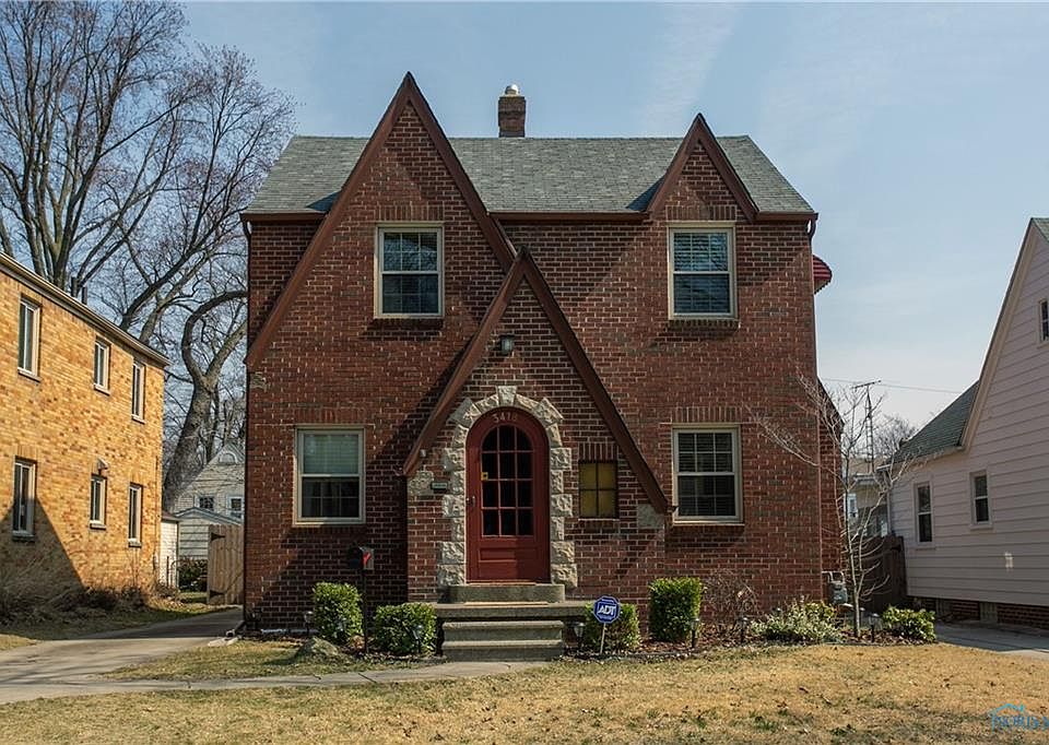 Stately and brick English Tudor style home offers updated kitchen w/open concept, includes bright space & appliances! Newer windows & blinds throughout. Half bath on first floor. 3-season back porch offers additional space & overlooks fenced backyard. Full basement is partially finished. Convenient expressway access, nearby local hospitals & University of Toledo. Includes Home Warranty!