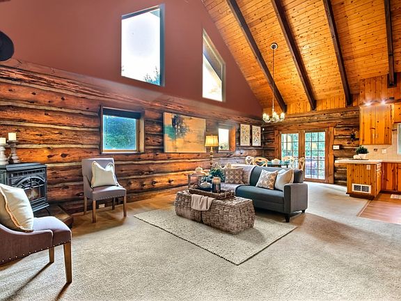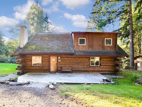 This secluded log cabin is everything you've been looking for to get away from the city. Situated on 5 acres of gently sloping land with multiple out buildings for any of your projects. Wide open floor plan with vaulted ceilings allow for endless possibilities. Large bedroom and spare room downstairs, and a massive master bedroom upstairs. Site also features oversized car port for multiple large vehicles and RV hookups.