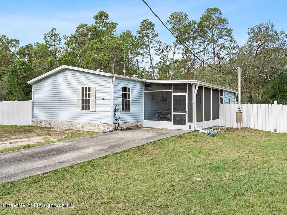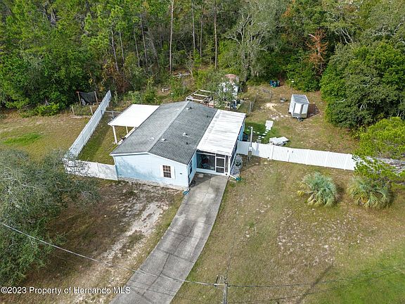 Here it is! This cozy 3/2 is at the end of a cul-de-sac and sits on nearly 3/4 of an acre. Vinyl privacy fencing and chain link around the back of the property enclose this little sanctuary in the heart of Spring Hill close to everything on US19. NO HOA and you own the land! Featuring a large front screened in porch, a spacious utility room and a new carport just installed in 2021. The back 1/3 of the property is naturally wooded with trails and there is also a large shed on an oversized concrete pad. Inside this split floorplan you will find vaulted ceilings in the living room, luxury vinyl plank and tile flooring throughout (no carpet) and crown moldings. The primary bath has both a garden tub as well as a separate walk-in shower. Home was completely re-piped in 2020 to remove polybutylene and septic was also pumped in 2020. You won't find a nicer home with this much land and this much privacy at this price anywhere else, schedule your showing today before it's gone!