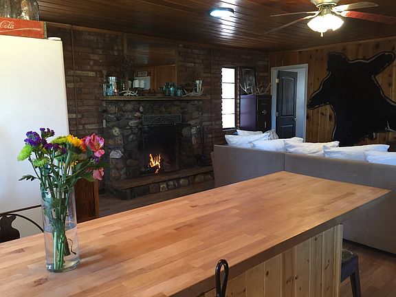 Modern rustic cabin in the woods. Rustic features with a stone fireplace and brick and wood interior. Modern full bath and kitchen with plenty of storage, quartz countertops and butcher-block island with seating. Seclusion and privacy on the hill with this property with beautiful mountain views and plenty of parking. Extensive rock landscaping with rock walls and flowerbeds. Large fenced garden and wrap around driveway. 2 bedrooms plus office and laundry.