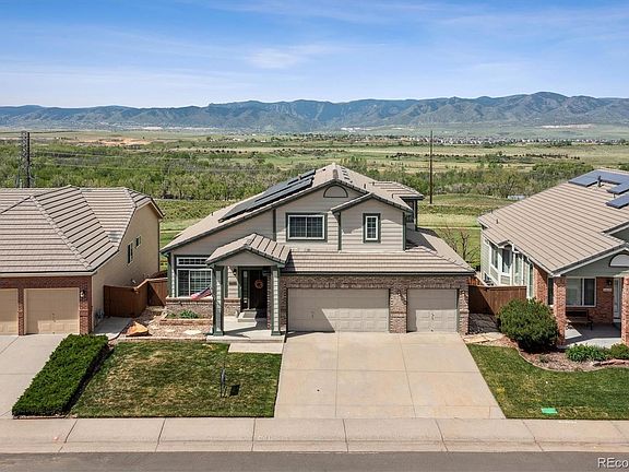 Views! Views! Views! Such a special location, image relaxing on the deck and enjoying the beautiful mountain views from sunrise to sunset; never gets old! This open and contemporary floorplan is ready for move in. So many features have been updated/replaced in 2021. Kitchen was completely remodeled including removing a wall to open the flow of the floor plan. Kitchen features a gas stove, gas line added, granite counters, new cabinetry, all Kitchen Aid appliances are included. Large kitchen island with seating and room for a pub style table. Hardwood floors on main level. Family room with gas fireplace. 4th bedroom or office on main level with a full bath. Upper level has plush carpet installed in 2021. Primary bedroom is located in the back of the house and enjoys the mountain view. 5 piece primary bath with tile flooring and counters, linen and walk in closets. 2 bedrooms with a Jack and Jill bath set up for the kids with tile floor and counter. Finished walkout basement can be outfitted for a variety of uses. There is space for a gym, media room, gaming area, etc. and there is a 3/4 bathroom and storage room. Furnace, A/C and water heater were all replaced in 2021. Besides being in Highlands Ranch offering 4 recreation centers, miles of walking/biking trails, dog parks and neighborhood parks, Plum Valley Park is 3 blocks away, this home checks all the boxes: 3 car garage, finished walkout basement, updated and has a great location with views.