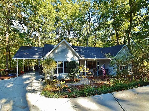 Lots of extras in this renovated ranch in lake community! Vaulted ceilings, stacked stone fireplace, hardwood and tile floors. Kitchen features granite counters, glazed cabinets, and breakfast bar. More extras outside with multilevel deck, hot tub, invisible fence, new driveway with extra parking or turnaround. Tall crawl has room for workshop and storage. Private backyard with creek flowing into Lake Lanier.