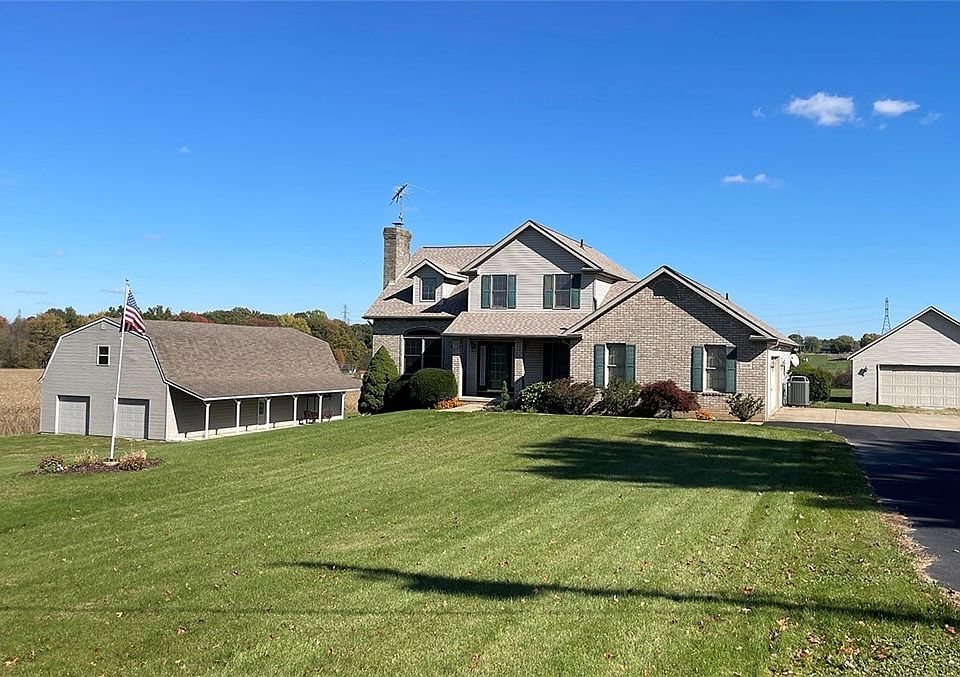 Wonderful country setting surrounded by open fields, great views, and quality homes. Adjoins the new Canton Township Community Park at the rear. Spacious home in need of cosmetic updates. Open concept with year-round sun room off the kitchen, first-floor primary bedroom. Two-car attached garage, two-car detached garage, plus a 30' x 64' pole barn with electric, part cement floor and part gravel for livestock, walk-up large second-floor storage, and covered side porch. Open hayfield at the rear. The home has three bedrooms with 3.5 baths. Large loft area room ideal office overlooking the great room. Main-level laundry with full shower bath. Wonderful setting, check it out!