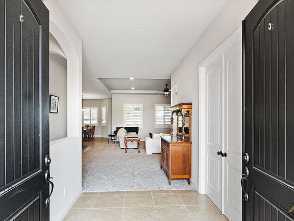 Like New! Located in Woodmoor Estates, this Beautiful split-wing home is better than waiting for new construction. Enjoy 4 bedrooms and 3 baths with an open floor plan. The double ovens and the huge kitchen island is perfect for gatherings. Additional features include a raised hearth fireplace in the living room, shutters throughout, 2 A/C units and a tankless water heater! The RV access is almost 13 ft. wide with an iron security gate. The covered patio spans the length of the home and the yard is surrounded by block wall fencing and a 3rd car drive-through garage! There is No Mello Roos Tax on this home. Per a 2018 appraisal, the s.f shows 2,655 versus Public Record which shows the s.f. smaller.