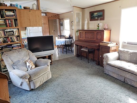 1993 Manufactured home on its own lot. Private little community just off Seavey Loop Rd. Double pane vinyl windows, 2x6 construction, vaulted ceilings, private fenced yard, 2 window air conditioners and covered porch. Home needs siding repair, Master bath repair, carport roof repair. Property sold AS IS.Cat inside please. See remarks
