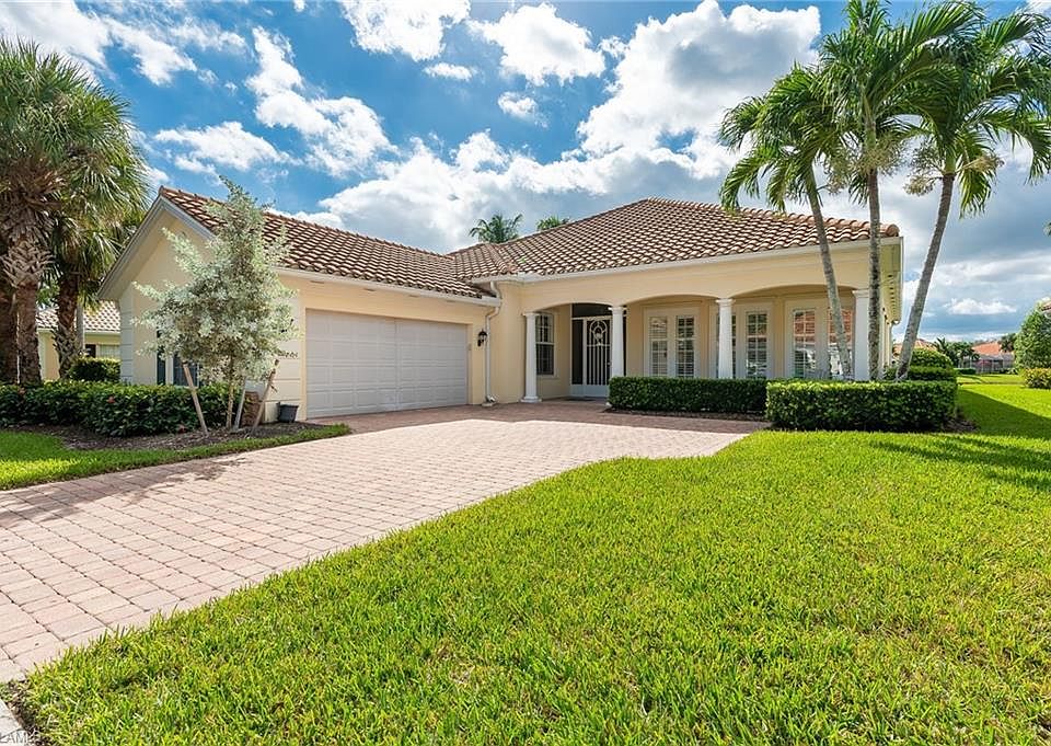 Welcome to this stunning home (Carlyle Model) in the desirable Island Walk community of Naples, FL. This spacious residence offers ample space for comfortable living and entertaining. As you step inside, you'll be greeted by the grandeur of volume ceilings that create an open and airy atmosphere throughout the home. The expansive long lake view is captivating and provides a serene backdrop to your daily life. The fantastic pool invites you to relax and unwind while enjoying the picturesque surroundings. Custom mirrored storage adds a touch of elegance and functionality to the space, while the two living areas provide versatility for various activities. The split bedrooms offer privacy and convenience, making this home ideal for families or those who desire separate living spaces. The new kitchen appliances and freshly painted interior add a modern touch, ensuring that this home is move-in ready. Tiled throughout NO CARPET. Roof was installed 2018 and the A/C 2021. Take a moment to enjoy the front sitting area, perfect for enjoying a morning coffee or evening conversation. The beautifully landscaped area enhances the curb appeal, creating a warm and inviting atmosphere. The etched glass front door adds a touch of sophistication, setting the tone for what awaits inside. Don't miss the opportunity to make this exquisite home yours. Schedule your showing today!