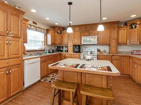 Huge manufactured home that sits on almost an acre. 3 bedrooms,(split bedroom plan) 2 full baths, master bath has a jacuzzi tub & double vanity. 2 living rooms, large kitchen with eat in area. All appliances stay as well as the washer & dry and the up right freezer in the attached garage. Huge laundry/pantry/mudroom area. Storage galore! This home has a new hot water heater, all pipes have new heat tape that are switched right inside the front door. This sits on .8 acres with a 2 car attached garage with lots of storage space and it also has a 1 & half detached garage. Partially fenced yard & play sets stays. Lots of landscaping and a garden full of veggies.