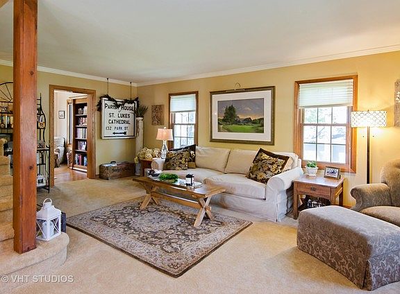 This show-stopper is now available. Charming home on a triple lot - 1/3 acre with mature trees and private backyard has been updated throughout. Cherry Kitchen w/abundance of cabinets with task lighting and all stainless steel appliances, including Fisher & Paykal dish drawers dishwasher & Dacor gas range. Spacious Living Room and Dining room with abundance of windows. The Family Room is cozy and has door to backyard & patio. The Master Bedroom has a wall long step in closet and there are two additional bedrooms up. Spacious bathroom with tub and tile with shower surround. Full unfinished basement has plenty of room for storage. The lot is gorgeous with mature oak trees and is admired by many with a private fenced backyard and huge additional side yard. Huge 2+ car garage has workbench and walk up stairs to attic for storage. Home has been updated with new roof (2013), windows (2016), appliances (2014), fence & gutters(2015), sump pump (2017) & more! Add this to your list!