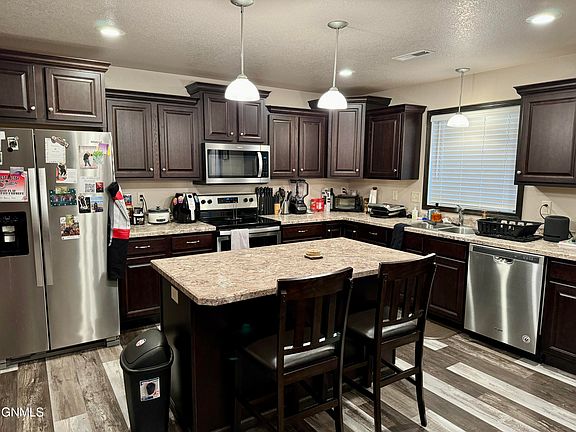 Open floor concept with a stunning eat in kitchen. Dark cabinets with stainless steel appliances complement the quality vinyl plank flooring. Enjoy the natural light from the balcony right off the dining room! You are sure to appreciate the oversized garage that is connected to the building, which is insulated, and sheet rocked! The elevator in this building gives you access to the privacy and security of this 3rd floor unit.