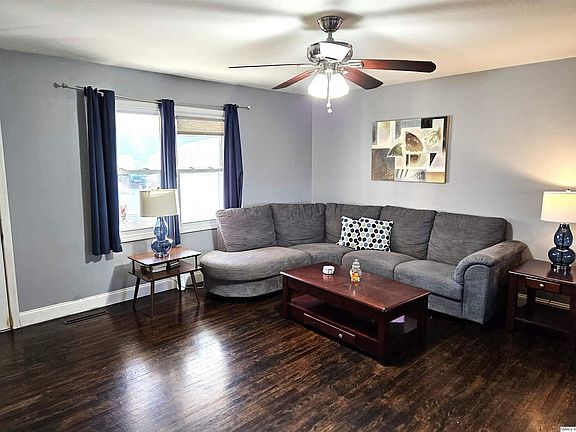 Updated Ranch having large living and open dining area with coffee bar. Remodeled kitchen with newer flooring, cabinets and tiled backsplash. New master bath with oversized shower and laundry hook-up. Newly finished LL in 2024 having family and rec area with bar and mini-fridge. Unfinished LL storage and utility area having shelving, radon mitigation system, HE furnace, and new sewer line. Additional features include replacement windows, 5x16 covered front porch, 11x22 enclosed carport, and chain-link fenced rear yard with brick patio, wood privacy fencing, and small shed. Mini-fridge and built-in bed in 2nd bedroom convey, but mattress and bedding does not convey. Property selling as-is with inspections welcomed.