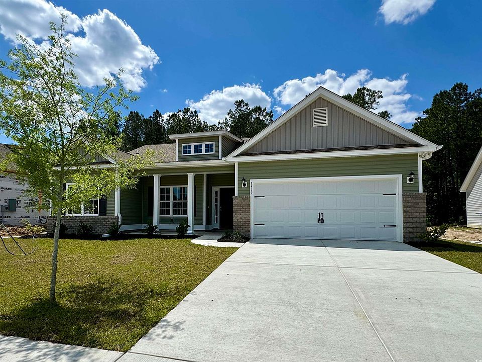 Welcome to Rivertown Row North, the most anticipated new development in the heart of Conway. Enjoy the comfort of Natural Gas heat, cooking & tankless hot water in this single level 1817 sq ft Sullivan model. This 3 bedroom, 2 bath split floor plan has a large rear Master suite, vaulted great room ceilings, Granite kitchen counter tops, and a kitchen bar w/ seating. The waterproof laminate plank flooring extends throughout the kitchen baths and living areas. There is also a 2 car painted and trimmed Garage w/ drop down attic access, Laundry room, pantry, covered front porch, and a covered rear porch with an additional concrete patio that doubles your outdoor entertainment space. All homes in Rivertown Row North feature wider than average lots, open floor plans, 9' ceilings, painted garage interiors, Gutters, fully cased windows, GAF high performance architectural shingles, 12" roof overhangs, Aristokraft Birch shaker cabinets, Rinnai tankless water heater, Frigidaire stainless appliances, and many other upgraded architectural details. The neighborhood features sidewalks, street lighting and a community pool with pavilion. Building lifestyles for over 35 years, we remain the Premier Homebuilder of new residential communities and custom homes in the Grand Strand and surrounding areas. We are three-time winners of the Best Home Builder award from WMBF News Best of the Grand Strand. In 2023, we were also voted Best Residential Real Estate Developer in the Myrtle Beach Herald Reader’s Choice Awards. We began and remain in the Grand Strand, and we want you to experience the local pride we build today and every day in Horry and Georgetown Counties. All Pics are not from actual home. Pics are from a similar floor plan. Actual Colors, feature and upgrades will be different.
